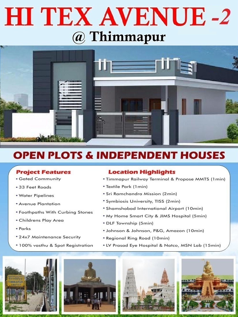 HI TEX AVENUE-2, with a pollution free environment for the Nature Loving citizens of Hyderabad. It is a valuable asset situated at Timmapur, surrounded by educational institutions like Symbiosis University for Management Studies & TATA Institute of Social Sciences.